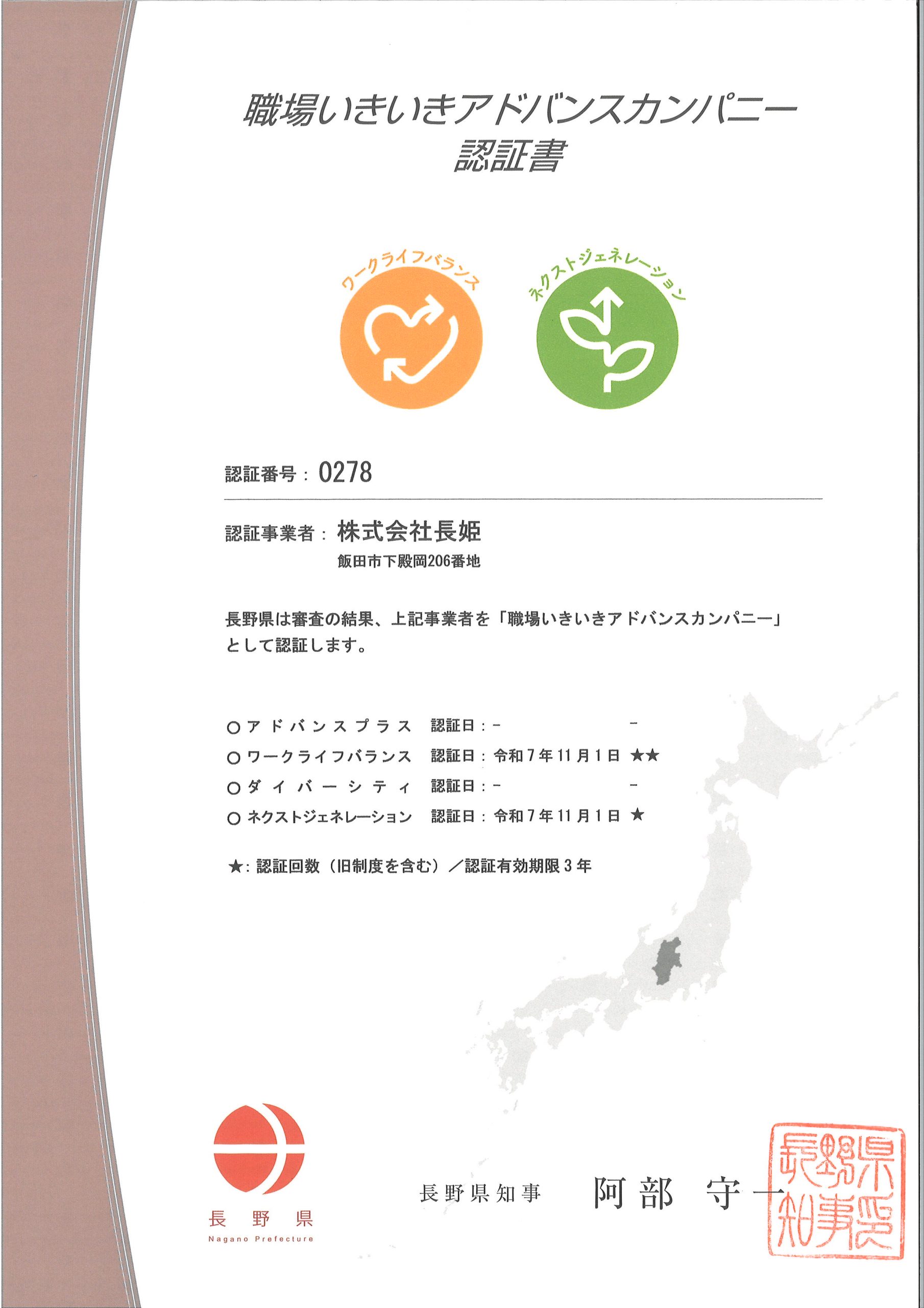 News ニュース 「職場いきいきアドバンスカンパニー」新たなコースの認証を受けました 2025年11月11日 「ワークライフバランスコース」に加えて、「ネクストジェネレーションコース」の認証も受けました。 詳しくは、ながのけん社員応援企業のさいと シューカツNAGANO を、ご覧ください。 PICKUP PAGE ピックアップページ